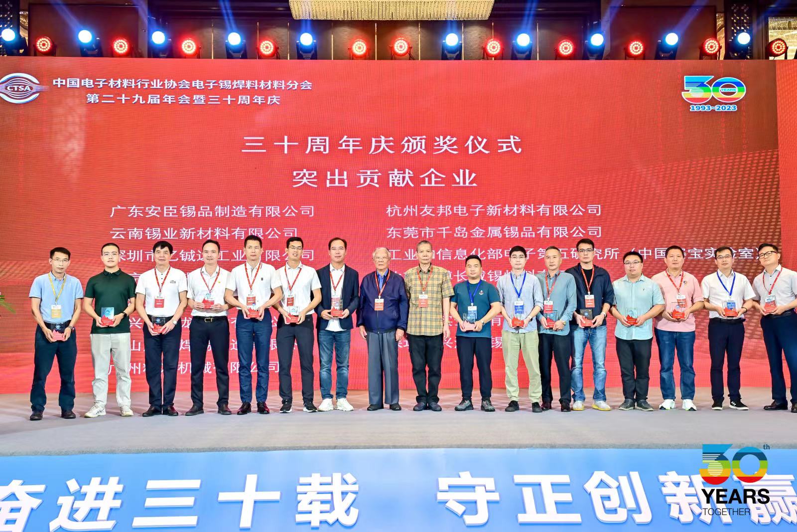 2023年10月19日,中國(guó)電子材料行業(yè)協(xié)會(huì)電子錫焊料材料分會(huì)第二十九屆年會(huì)暨三十周年慶在廣東·珠海舉行。本屆年會(huì)以? “砥礪奮進(jìn)三十載,守正創(chuàng)新贏未來(lái)”為主題,旨在總結(jié)經(jīng)驗(yàn),表彰先進(jìn),研判形勢(shì),提振信心,推動(dòng)行業(yè)企業(yè)高質(zhì)量發(fā)展。