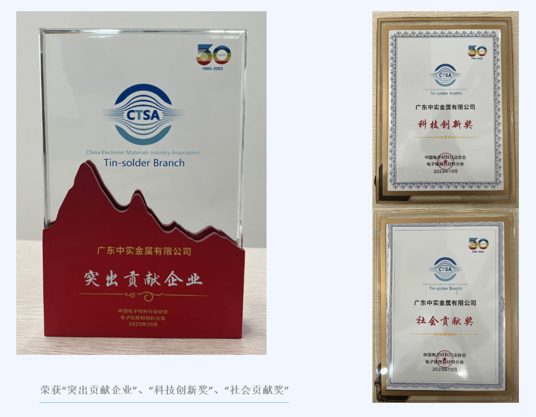 【實(shí)力見(jiàn)證】中實(shí)金屬榮獲電子錫焊料材料協(xié)會(huì)的多項(xiàng)殊榮