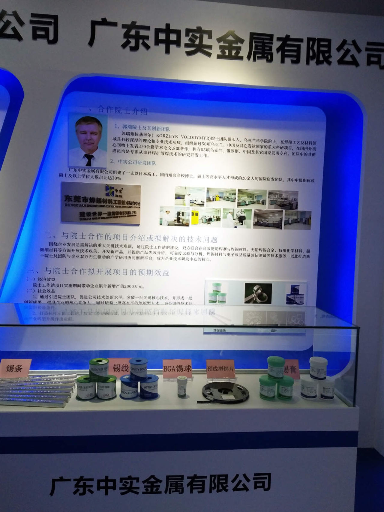Among them, the advanced welding materials academician workstation jointly built by Guangdong Zhongshi Metal Co., Ltd. and Academician Guo Rui Vladimir also participated in the event, and presented a variety of solder scientific research achievements since the establishment of the academician workstation.